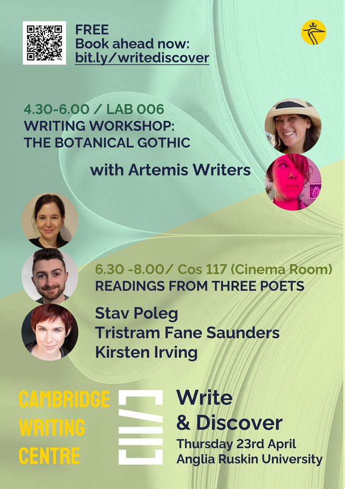 Join us for a Botanical Gothic writing workshop with the fabulous Artemis Writers, followed by readings from poets Stav Poleg, Tristram Fane Saunders and Kirsten Irving.
